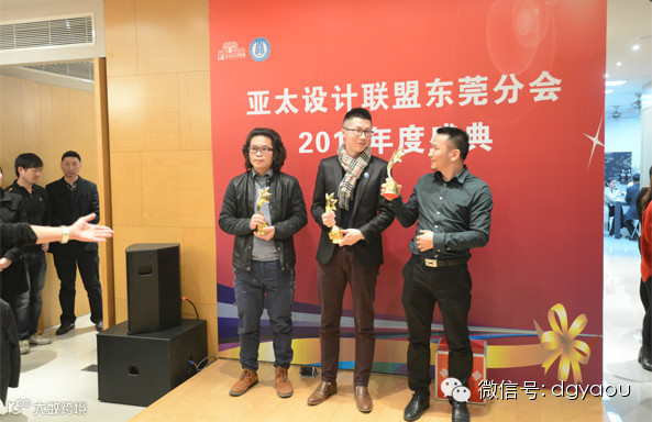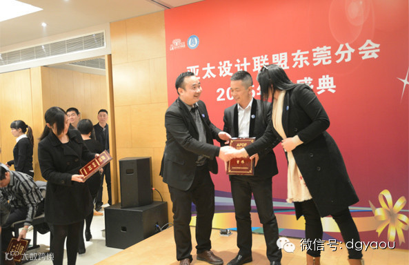 2015年1月15日下午13:30分,亚欧装饰总经理罗卫锋先生带领了数位得奖设计师到厚街迪信家居员工宿舍楼参加了由亚太设计师联盟东莞分会主办的亚太设计师联盟颁奖典礼,宴会上,罗总担任颁奖嘉宾为部分得奖设计师颁发证书和奖杯,其中亚欧装饰设计师徐子秦荣获2014华南亚太空间年度“最佳设计奖”,邓晓东、韦豪森、庄良彬、陈秋璇荣获2014亚太空间年度“优秀奖”。