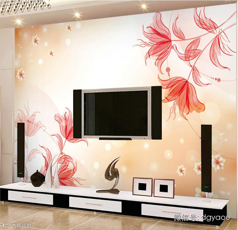 4、大花朵图案降低居室拘束感。有些花朵图案逼真、色彩浓烈,远观真有呼之欲出的感觉,这种墙纸可以降低房间的拘束感,适合格局较为平淡无奇的房间。由于这种图案大多较为夸张,所以一般应搭配欧式古典家具,喜欢现代简洁家具的人们最好不要选用这种墙纸。