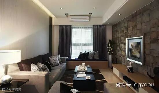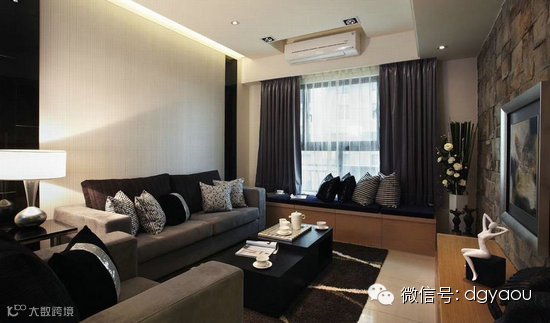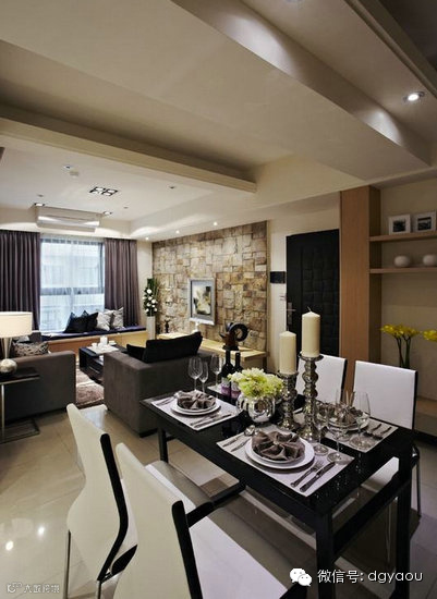 徨筑设计将设计重点放在空间主墙的设计规划上,以色彩、形体多变的石材设计客厅电视墙。