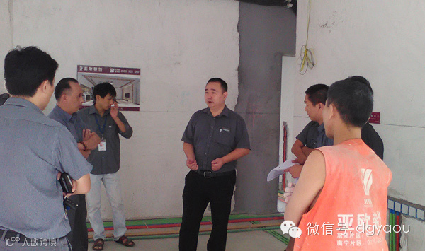 为保障工程质量、加强工程安全、确保工程顺利按期竣工,让每位业主能放心、安心入住新居。2014年10月10日至11日,亚欧装饰总经理罗总、副总经理邵总会同工程指挥中心、营运服务中心及各分公司工程主管前往东莞片区各楼盘工地进行突击检查。