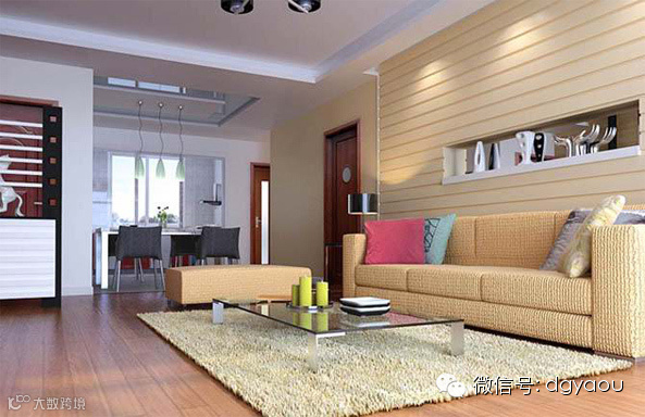 如果你家的客厅纵深不宽,加上墙后还有一个空间,不妨可以打掉实体墙重新规划一个区隔,如上的这个客厅,就是客厅串联书房的设计,以一个半矮墙作为分隔,使得整个客厅的纵深加宽。这种矮墙,可以预藏网路、电话或者甚至电线管道,也可以当作是书桌的一个桌面。沙发背景墙除了用于倚靠更用于欣赏。对于小户型来说是客厅的一大风景,挂画、壁纸、反光镜面、雕花板、投射灯是重要的装饰品,我们在家居设计的时候要学会如何完美的组合搭配