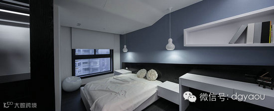 延续男孩房的蓝色语汇,窗边压梁的问题也以折纸天花线条修饰。