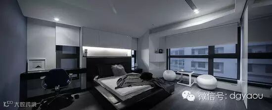 染黑钢刷木皮垫高的平台,在不锈钢床头墙与落地更衣门片中,调和出有暖度的黑色时尚。