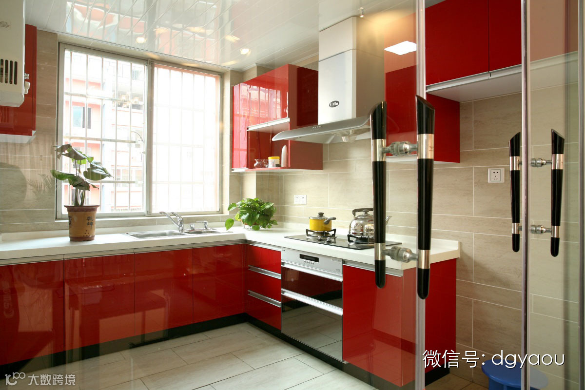红色橱柜五行属火,而厨房五行亦属火,符合火来相助的道理。