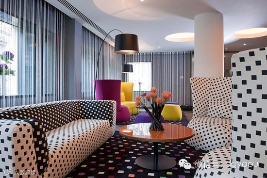 设计师用可爱迷人的斑点沙发打造独一无二的空间氛围,加上对比强烈的黑白色彩和戏剧性的线条窗帘的点缀,这样生动活泼的内饰设计,无疑是成为了宾客度假体验的一部分。
