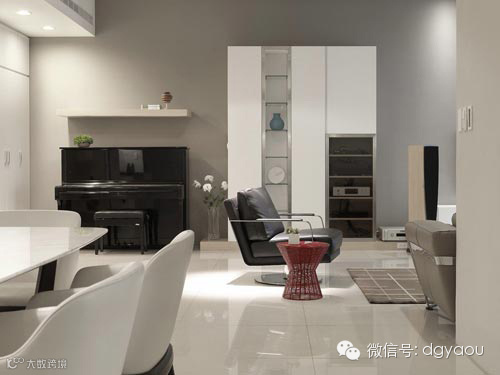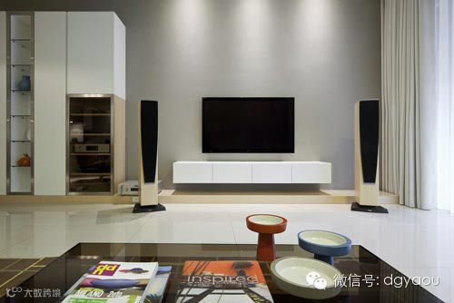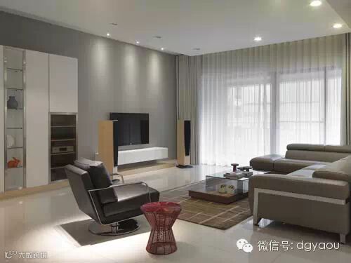 客厅设计:净化室内的配色彩度,佐以光合暖阳的温度,淡淡的色泽均匀洒上灰色块,平实中挹注人文温度。