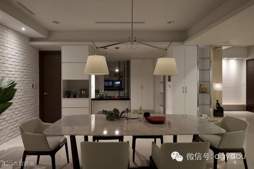 餐桌亦是阅读桌,搭配的灯款不仅能提升气氛,适当的光源亮度也作阅读灯使用,使餐厅成为家人们相互交流的美好空间。