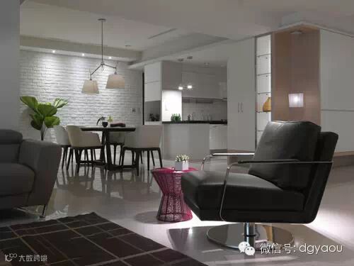 餐厅设计:经客户变更的结构,不再拆卸浪费分毫,从玄关、客厅至餐厨场域,均透过开放式态度,充分显示了六十坪的宽敞性。