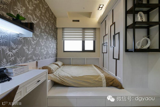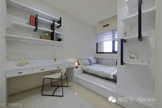 架高地板增加实用的抽屉柜,并沿着墙面订制书柜,打造多用途的收纳空间。