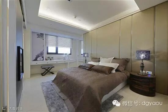 大面积绷布的床头造型,藉由稳重色彩和线条比例,构筑典雅大方的气质。