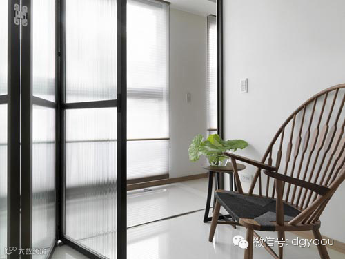 客厅设计:透光玻璃折迭门隔间的多功能空间,在开阖间弹性变化场域的使用表情。