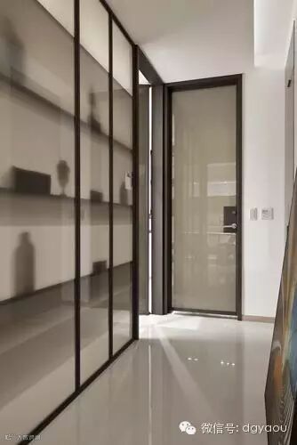 廊道设计:与女孩房间的墙面以透光玻璃打造,当光线洒落,悬于房内的铁件悬吊书架与饰品透出剪影效果,仿似精品艺术廊道。