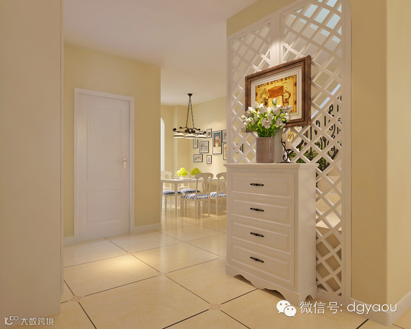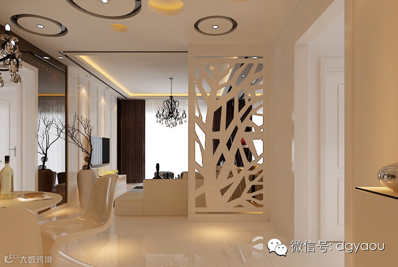 2、客厅玄关的间隔不宜太高或太低,而要适中。一般以两米的高度最为适宜,下面可以做柜子之类,高八十八公分左右。上面可用博古架之类的,若是客厅玄关的问隔太高,处身其中便会有压迫感。风水学上认为,客厅玄关如果设置得太高,就会完全阻挡了屋外之气,从而隔断了来自大门的新鲜空气或生气,是非常不可取的。而太低,则没有效果,无论在风水方面以及实用方面均不妥当。