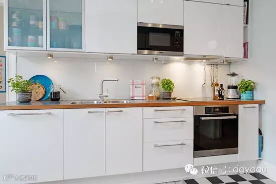 白色的橱柜,嵌入式烤箱设计节省空间。