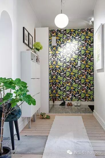 走道采用木质地板,很简约的风格。鞋柜也是很大的三层收纳柜,方便实用。