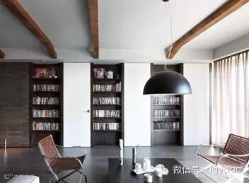 床头背景墙放弃对称感,用钢架格子结构,镶嵌原木,露出树木的肌理,与白色床品融合。纯粹的原木装饰,让卧室回到最原始最美最自然的本质。没有华而不实的家具,只有整面衣橱的磨砂玻璃被黑色线条简单分隔,提升空间的亮度,低调而沉稳。