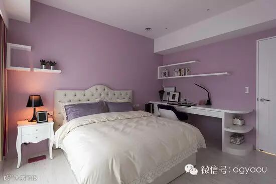 走以粉白色系的女孩房,木作部份搭以现成柜体做出书桌机能。拥有大桶深的衣柜量体,春雨设计将其分段规划透过层板与吊杆运用增量收纳。