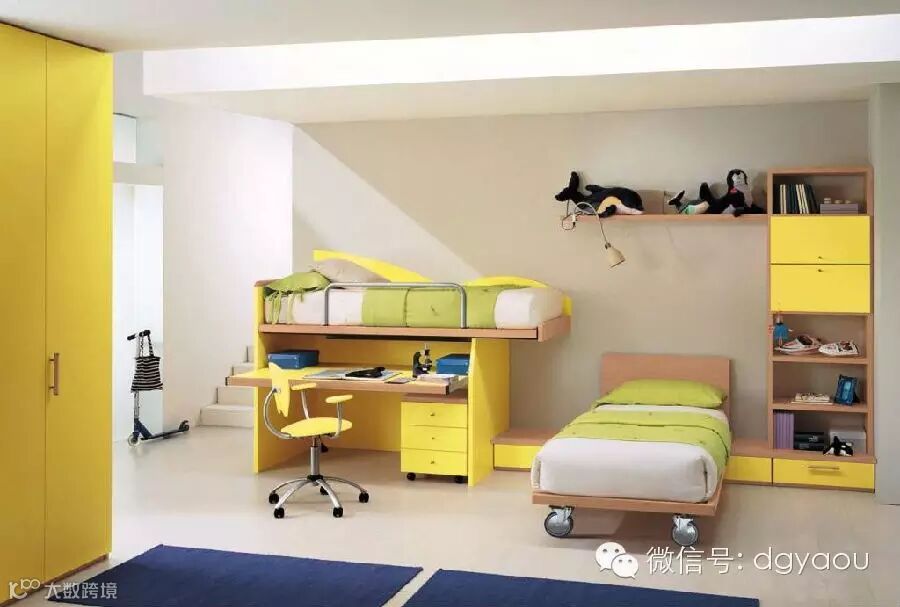 4岁以下的宝宝空间安全更重要,对于0-4岁的宝宝,这一阶段的儿童房安全性十分重要。5-7岁孩子的儿童房应更注重健康,8-11岁的孩子儿童房应考虑学习需要,8-11岁的孩子进入学龄期,度过了磕磕碰碰的年纪,开始独立自主地玩乐。这个年龄段的孩子似乎永远有着用不完的精力,到处乱跑成为他们日常主要活动,在地面材料的选择上,耐磨易打理是考虑因素之一。这一年龄阶段的孩子喜欢到处乱跑玩耍,在跑动过程中难免会摔倒。因此,儿童房的地面选材可以选择地毯,柔软的地毯在孩子摔倒时能起到缓冲和保护的作用。