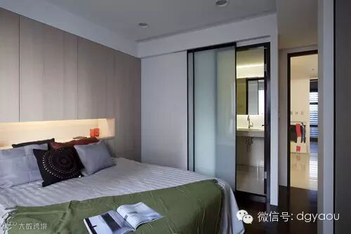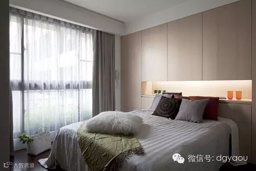 主卧室:床头的柜子局部留空,方便男女主人随手摆放手机、时钟等物品。