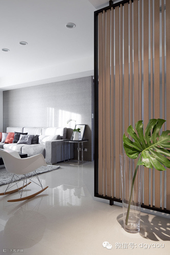 客厅:选择造型简约、色彩单一的家具,带入些许北欧风格的休闲感。