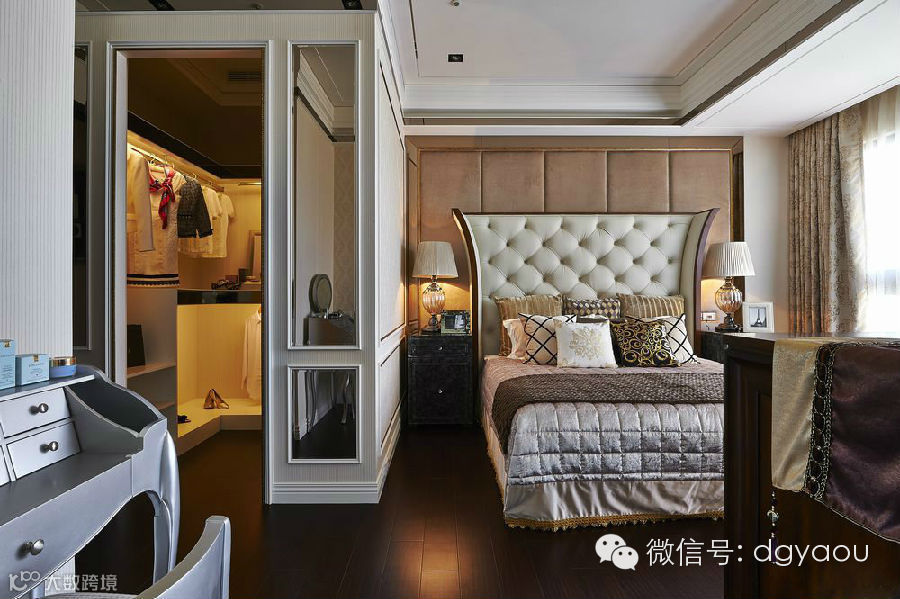 浅米色系床头片呼应上欧式精品家私,连贯性带出公、私领域空间风格。