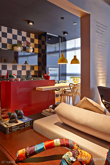 这是一套位于巴西中部的公寓。这套公寓迷人的地方在于它既保留了巴西家居风格中的激情,善于利用颜色来增加房屋的活力,同时也非常的现代,融合了精致纹样和个性十足的小件,这些创意小物第一眼看到就会让人爱不释手。设计师运用了有趣的纹理来搭配这些艳丽的色彩而使整个家居风格年轻化的倾向非常鲜明。