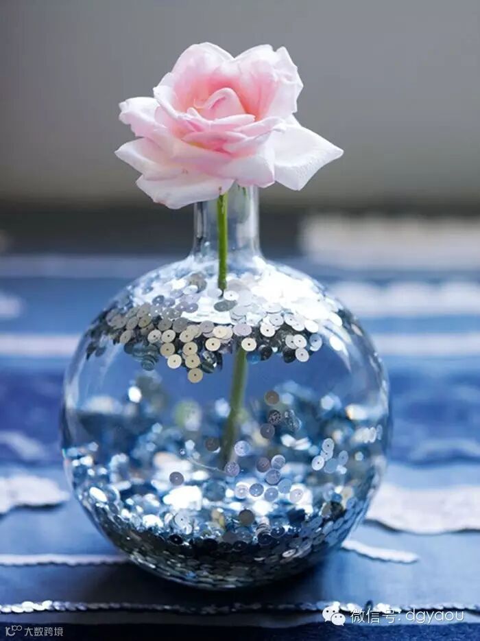 40. 旧衣服新花瓶:将旧衣服上的亮片拿来装饰花瓶。