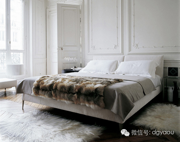 30. 增加华丽元素:皮草(假的会更好)的点缀,放置在床尾或地上,空间立刻华丽起来。