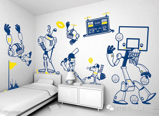 巧用绚丽色彩手绘家居墙,打造个性另类的儿童房设计;手绘墙画让儿童房间魅力四射,体现出了孩子丰富的想象力和对美好生活的向往,同时也让孩子的世界多了一份惊喜与感动。