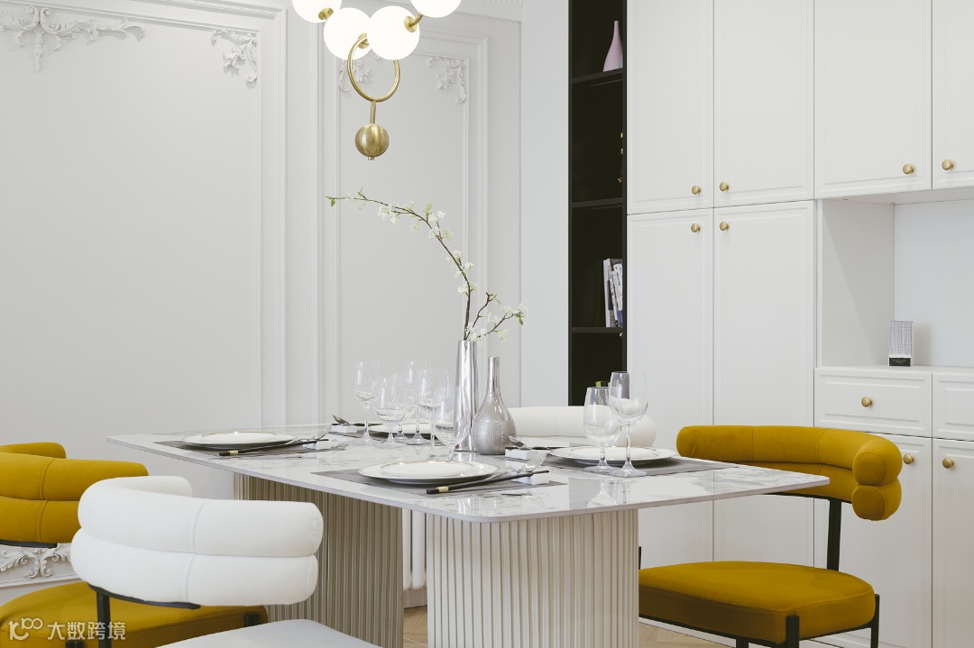 轻奢风的材质选择上一定会选用显贵的材质,只需要一点点就能让整个空间熠熠生辉圈。能够更好搭配金属材质实现低调的轻奢。
