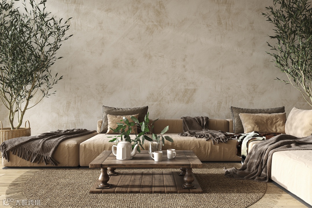 是一种非圆满的美,无求无华,非常规之美。侘寂风的元素原木、藤编元素、亚麻制品,未经打磨的天然石材斑驳暗淡的墙面。纹理粗糙的地板,呈现一种原生态质朴的美感。