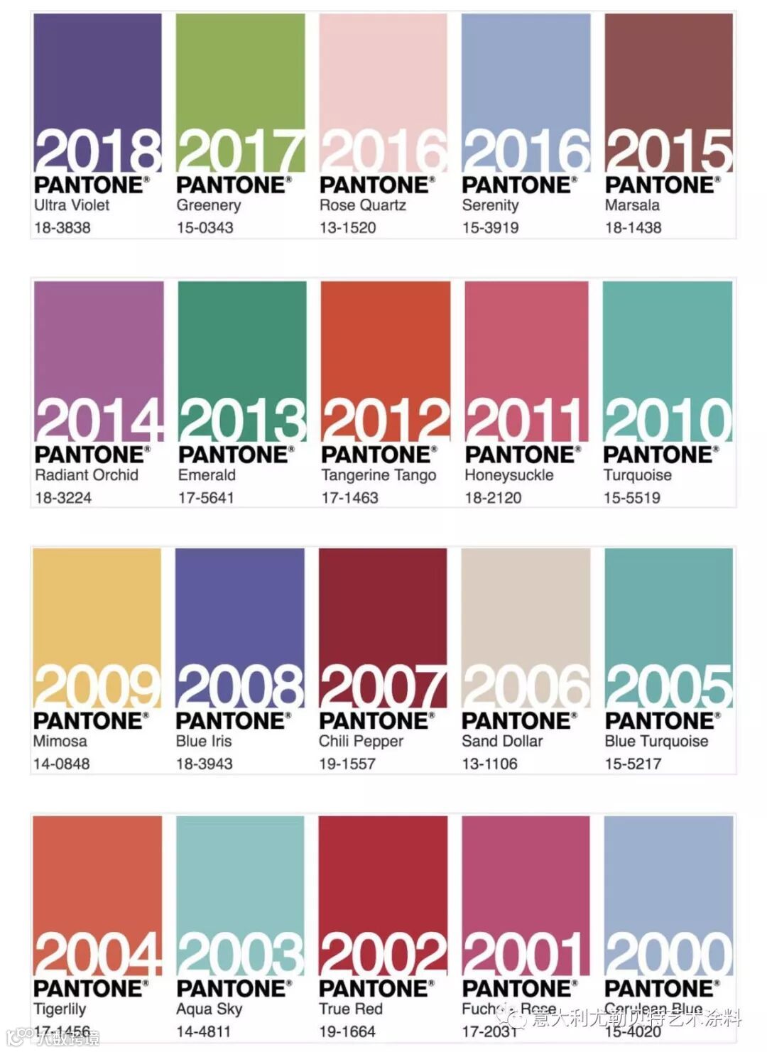 历年潘通年度代表色