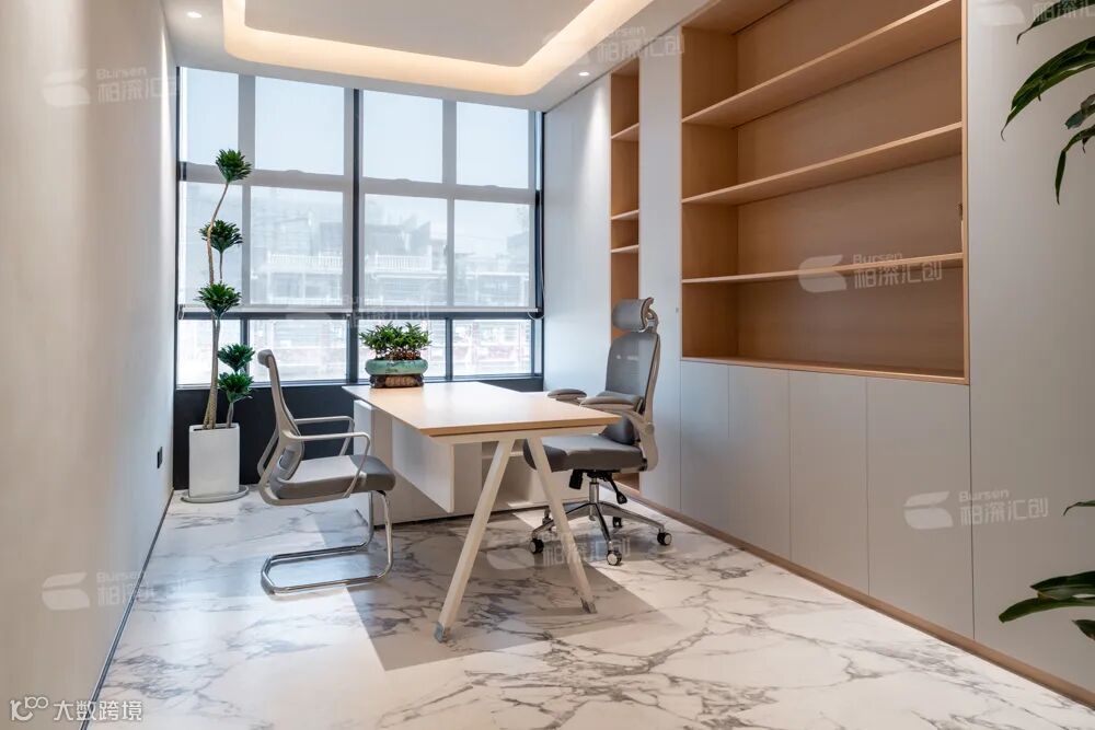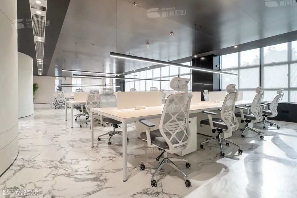 为强化空间的整体性与高级感,大量使用了大理石、微水泥等材质。从墙面、地面到部分办公家具,实现无缝一体化处理。天然细微的纹理,打破了纯色的单调,赋予空间丰富的肌理层次。