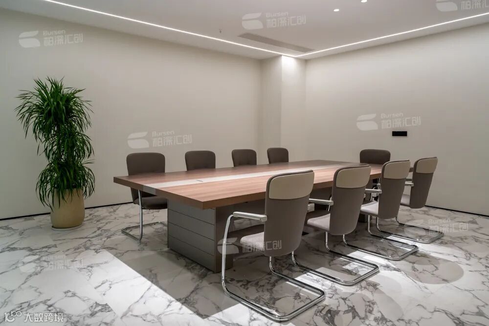 「商务会议室」简约为基调,无主灯的极简天花设计,现代又具有商务感,可满足部门、商务会议。