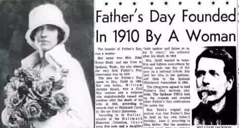 1909年,华盛顿一位叫布鲁斯 · 多德的夫人,在庆贺母亲节的时候突然产生了一个念头:既然有母亲节,为什么不能有父亲节呢?