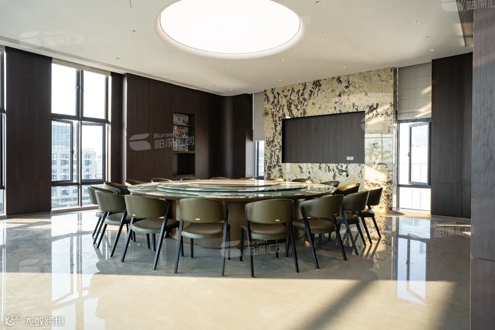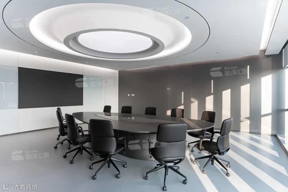 不同风格的会议空间:异形会议室以动态光影激发创新协作,大空间会议室用全景光幕承载战略对话,椭圆形会议室借环绕柔光营造平等交流。茶空间以现代与中式韵味相融,让合作在自然流动中产生更高共鸣。