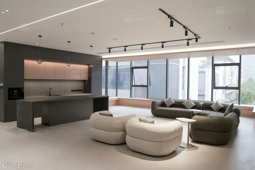 以高级灰与棕色为基准的办公空间,办公与沙发区,整体烘托出活力与大气,为员工带来自然的人性化舒缓感受。打造一个高效、简约的办公空间。
