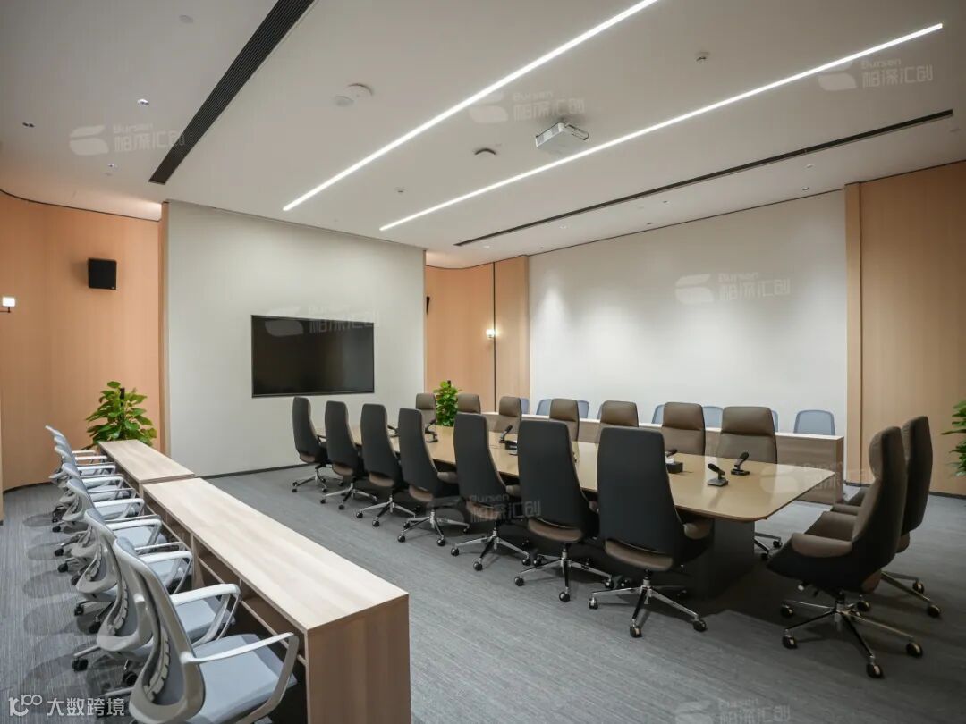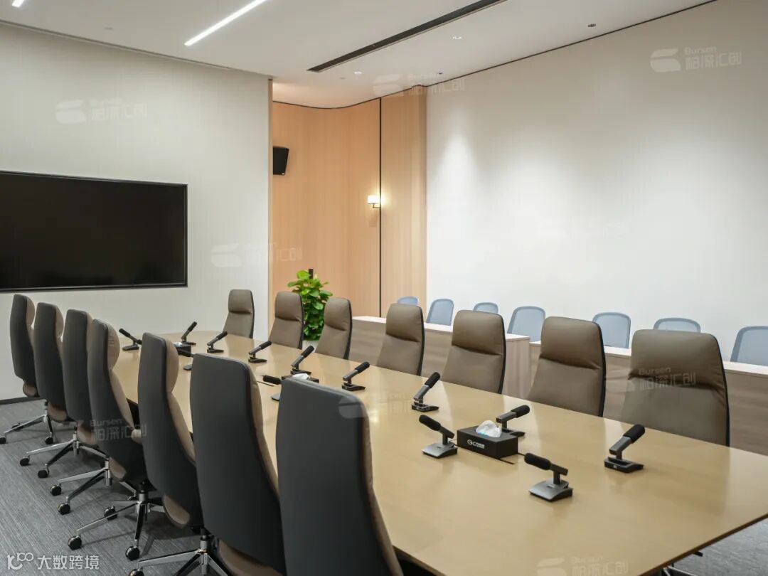 这个会议室功能以多样化为主。无论是举办商务会议、培训讲座,还是公司大型培训会议,它都能完美胜任。自由布场设计,可以根据不同的活动需求,轻松变换布局。传统的课堂式布局、U 型会议方便大家交流讨论,或者是圆桌式布局,都能满足企业的需求。