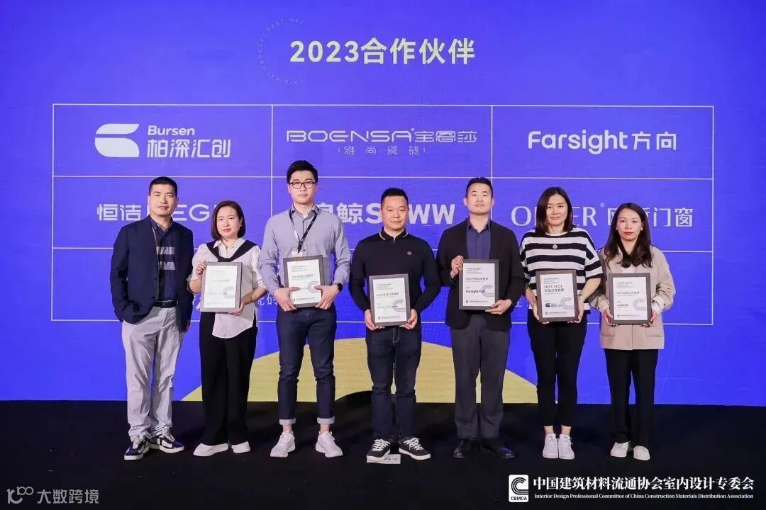 中国建筑材料流通协会室内设计专委会为柏深汇创等企业授予“合作伙伴”牌匾。