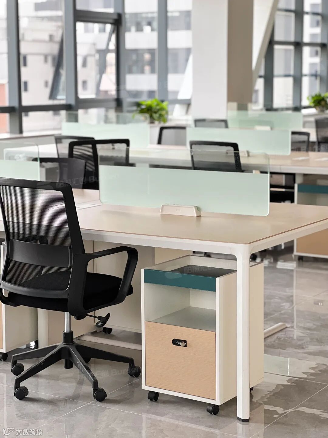 大面积的落地窗将阳光引入办公室内