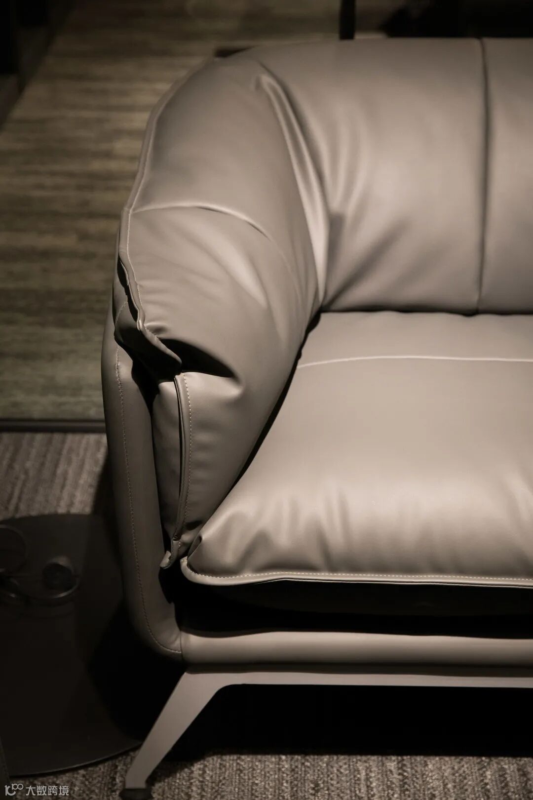 全真皮——指沙发面料(除了底面)完全用真皮包裹制作而成。真皮表面能够清晰看到有天然毛孔和皮纹,表面丰满,手感柔软,富有弹性。