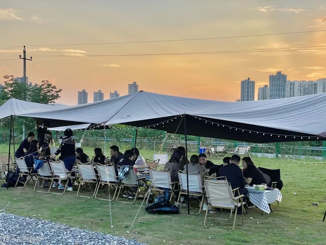 山野之下,柏深大家庭在这里欣赏落日,一边烤肉一边喝酒,享受团队凝聚的快乐时光。