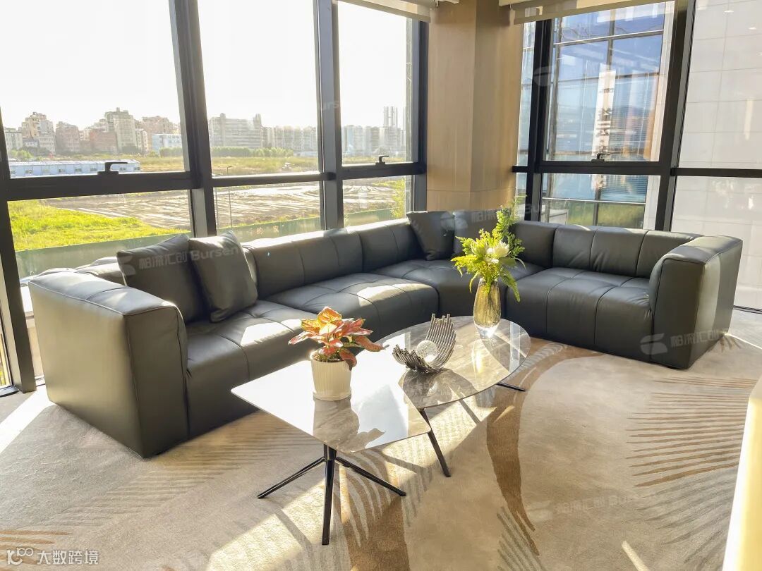 整个前厅看似简约的线条,但勾勒出轻奢的质感。透明的落地玻璃窗,让更多的阳光撒透在这片空间,营造出温暖舒适的办公环境。