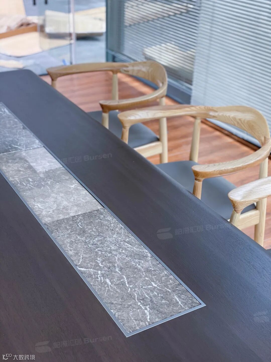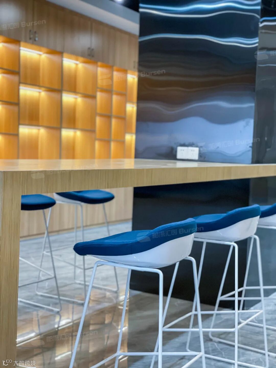 茶室为现代设计,深浅颜色交错