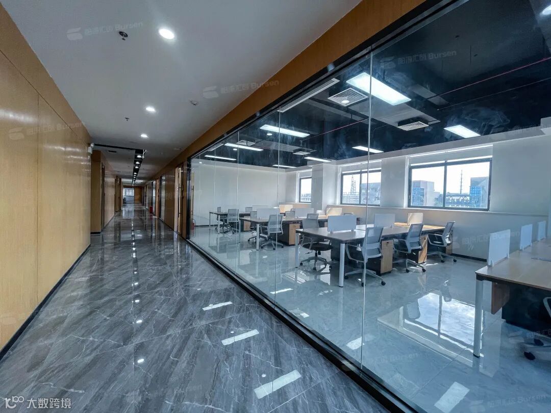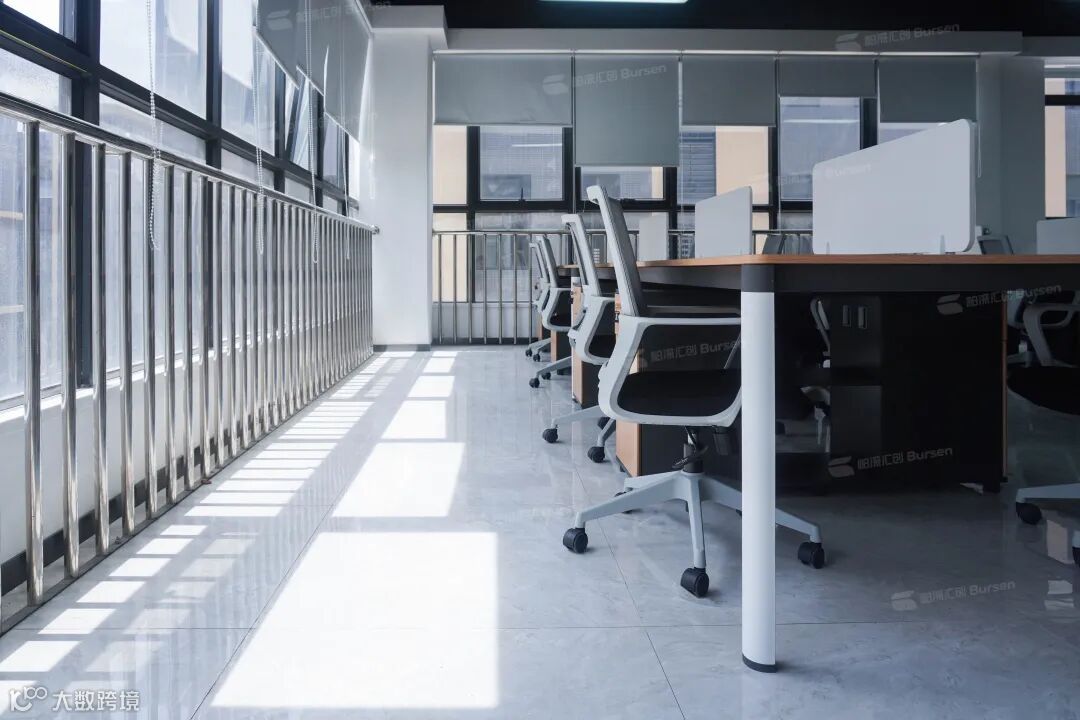 开放式的办公区域和长条走廊相呼应