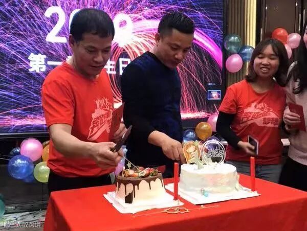 这一季度的生日会恰好包含了老板的生日,故而我们隆重的请出了我们的老板代表寿星公们切蛋糕。