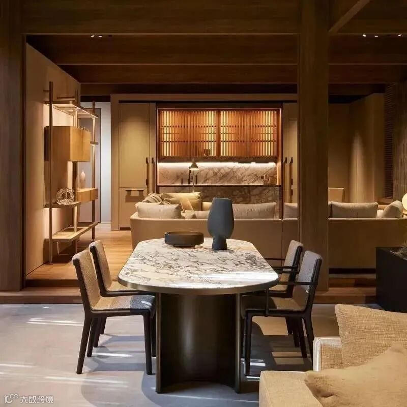 除了使用大胆的色彩与创意、设计结合以外,木质材料的使用更是给大家留下了深刻的印象。疫情以后,越来越多人正回归本心,追求舒适的生活状态,天然的木材成为家具首选。