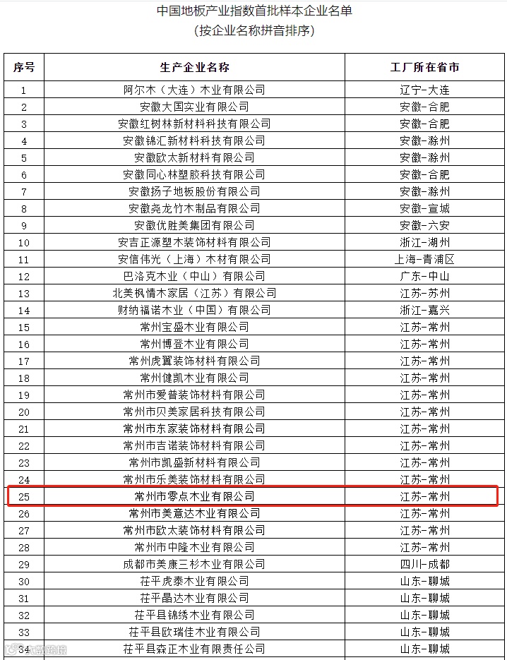 中国林产工业协会公示入选首批中国地板产业指数的220家地板企业。百格贝特家居制造工厂——零点木业成功入选中国地板产业指数首批样本企业。