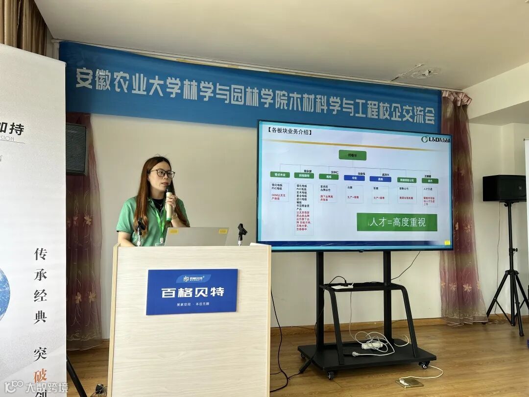 公司人员向同学们详细介绍了百格斯特公司——百格贝特品牌的发展历程、企业文化等;并带领学生们参观地板墙板产品展厅,了解地板产品全貌。