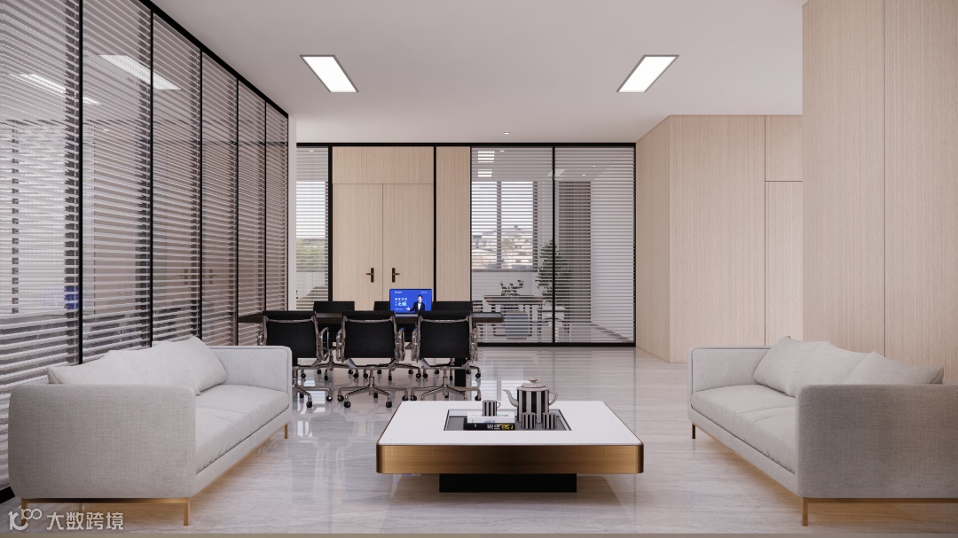 落地窗让视线和布局更加通透,巧妙的利用百叶窗进行空间分割,呈现流动韵律的现代感。空间简洁的设计尽显都市时尚的气质,营造现代、时尚又不失轻盈灵动的办公氛围。
